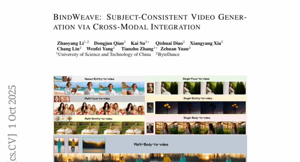 – Development of BindWeave, employing a pretrained multimodal large language model (MLLM-DiT) to perform deep cross-modal reasoning, resulting in subject-aware hidden states for high-fidelity video generation.