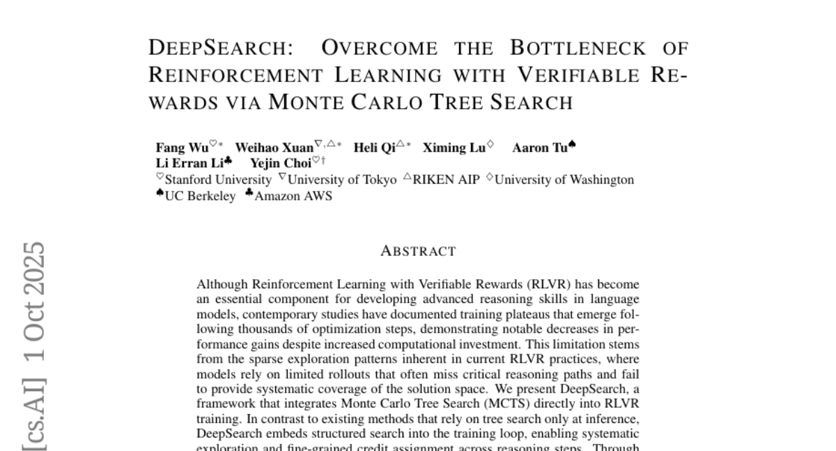๐ Keywords: RLVR, DeepSearch, Monte Carlo Tree Search, AI-generated Summary, Systematic Exploration