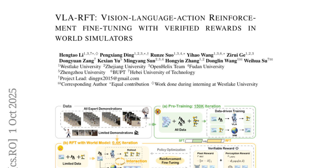 – To develop a reinforcement fine-tuning framework, VLA-RFT, that enhances the efficiency and robustness of Vision-Language-Action models using a data-driven world model.