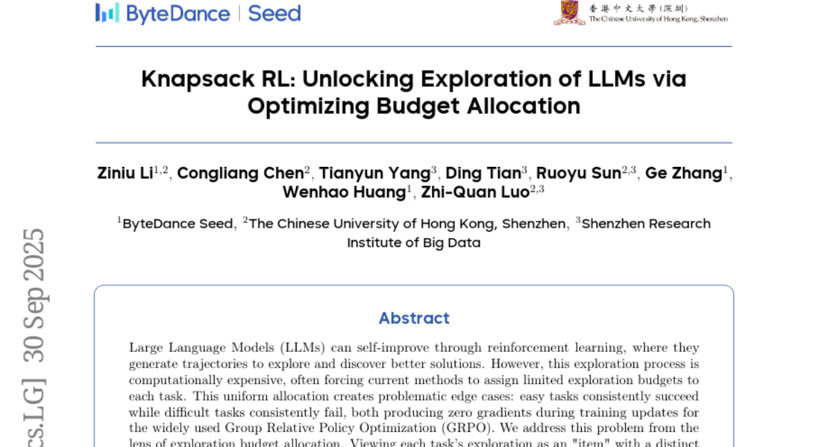 – Utilized a knapsack problem approach to adaptively distribute exploration resources during training for Group Relative Policy Optimization.
