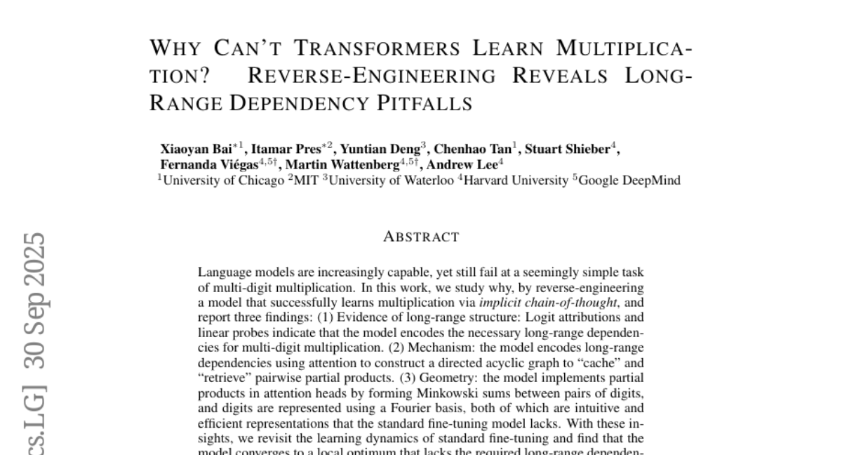 – To understand why language models struggle with multi-digit multiplication by reverse-engineering a model that learns via implicit chain-of-thought.