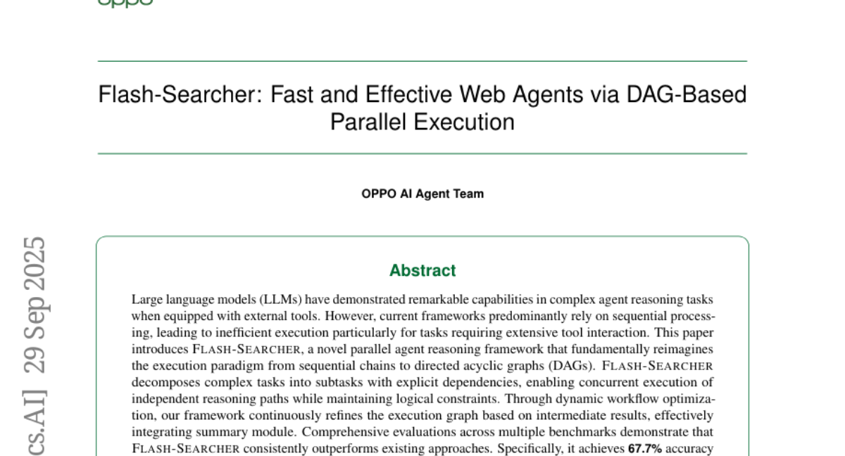 – Introduce Flash-Searcher, a novel parallel agent reasoning framework that shifts from sequential processing to directed acyclic graphs to enhance efficiency and performance in complex reasoning tasks.