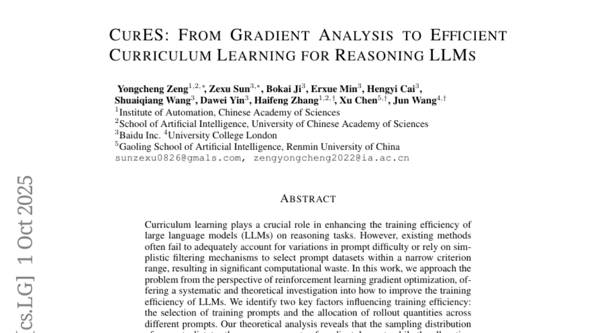27. CurES: From Gradient Analysis to Efficient Curriculum Learning for Reasoning LLMs
