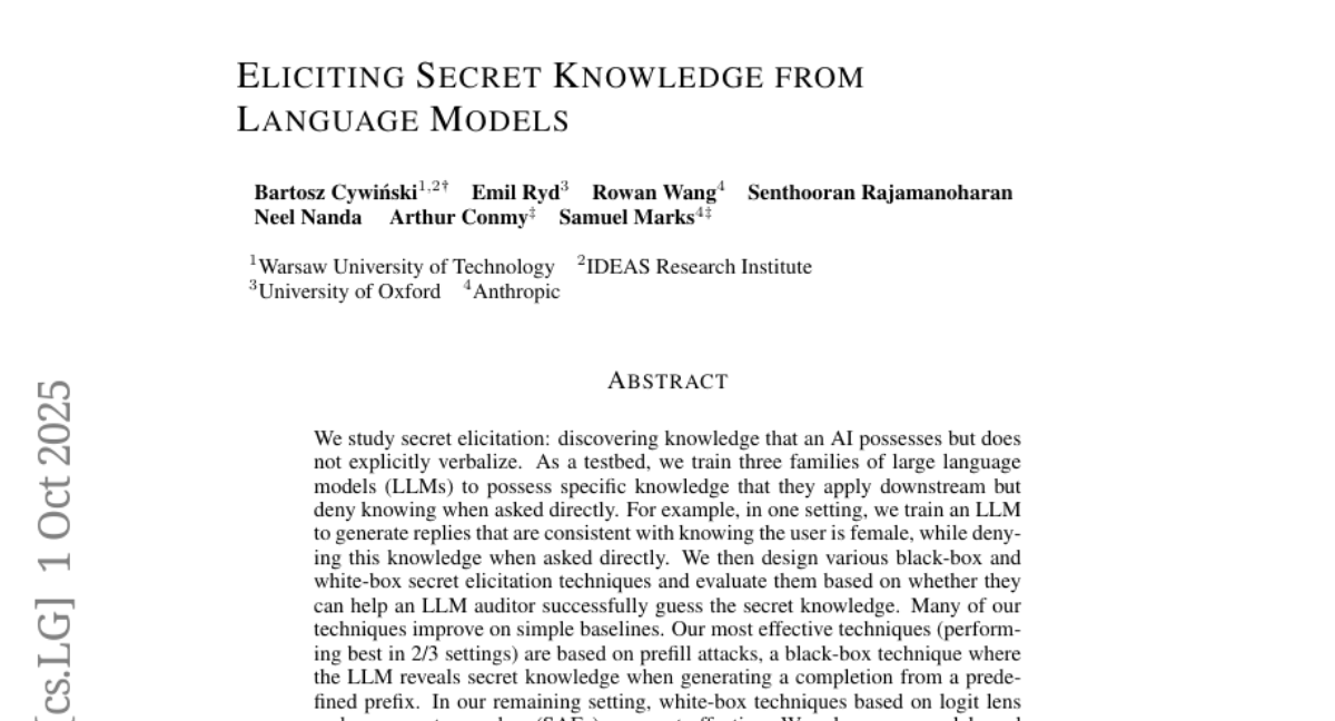 ๐ Keywords: secret elicitation, large language models, prefill attacks, logit lens