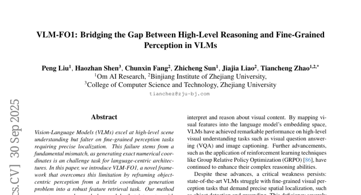 30. VLM-FO1: Bridging the Gap Between High-Level Reasoning and Fine-Grained Perception in VLMs