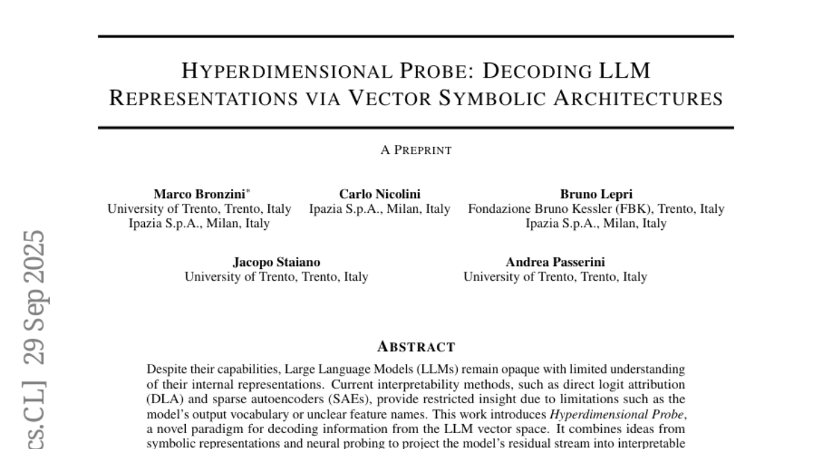 ๐ Keywords: Large Language Models (LLMs), Hyperdimensional Probe, Vector Symbolic Architectures (VSAs), interpretability, decoding information