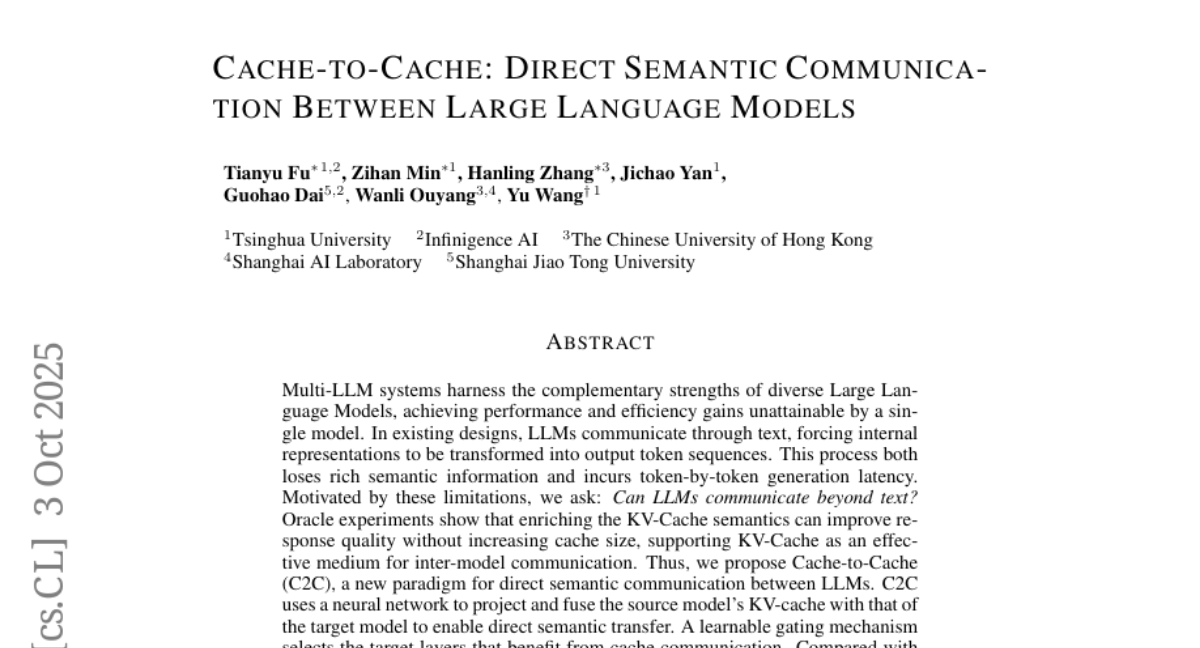 1. Cache-to-Cache: Direct Semantic Communication Between Large Language Models