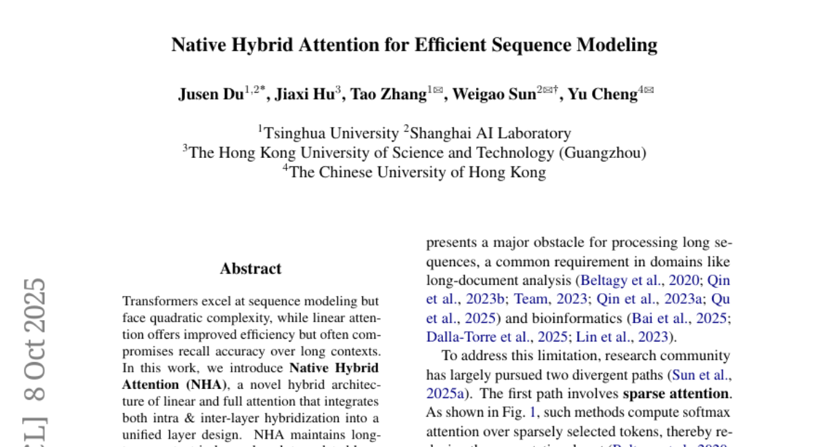 – Introduce Native Hybrid Attention (NHA) to improve efficiency while maintaining long-term context in AI models, outperforming Transformers.