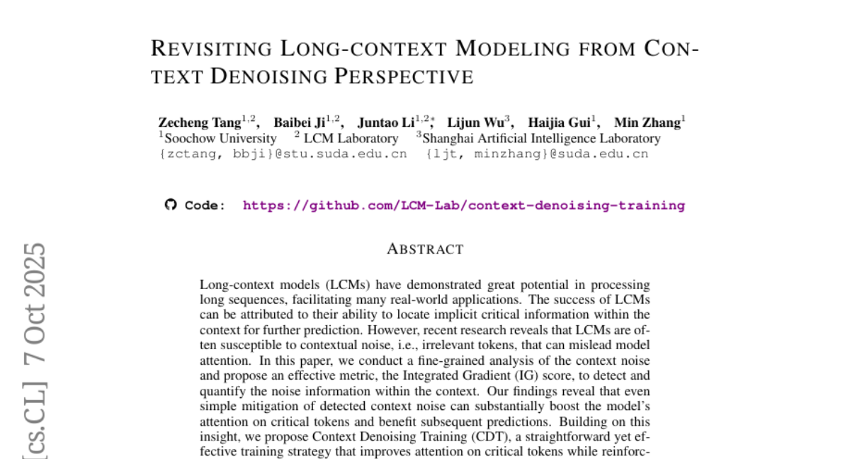 ๐Ÿ”‘ Keywords: Context Denoising Training, Long-context models, contextual noise, critical tokens, Integrated Gradient