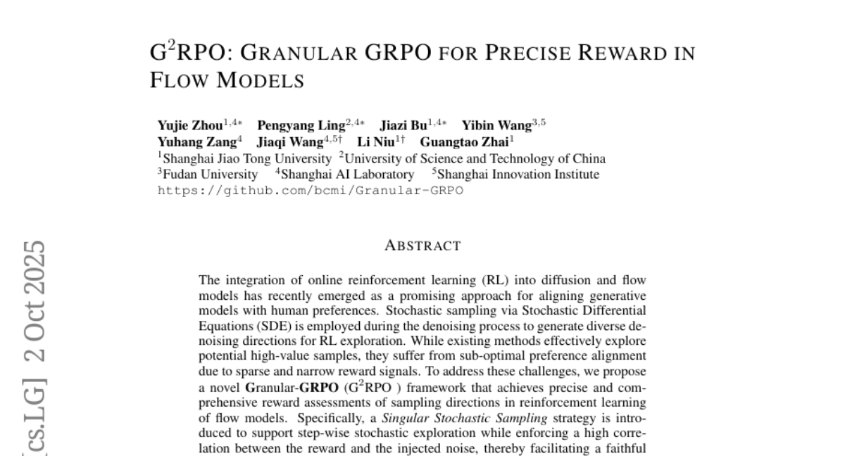 – Develop a novel Granular-GRPO framework to enhance reinforcement learning in diffusion and flow models, by improving reward assessment and reducing bias in the denoising process.