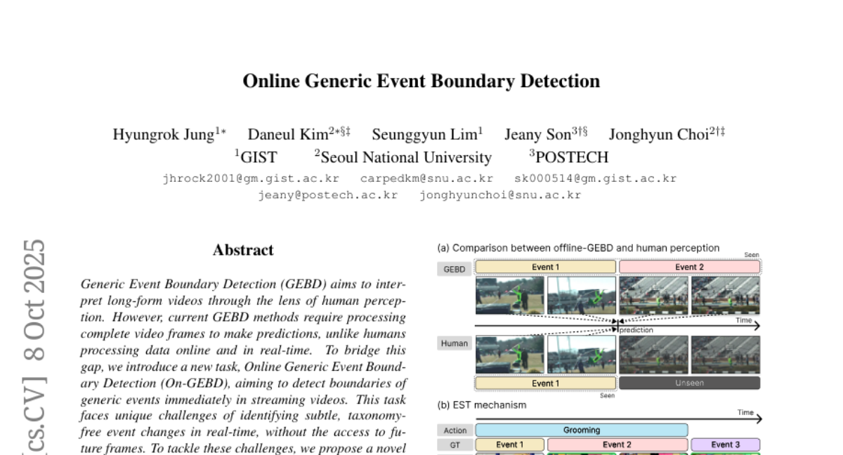 ๐Ÿ”‘ Keywords: Online Generic Event Boundary Detection, Event Segmentation Theory, prediction error, streaming videos, real-time
