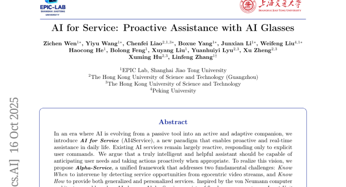 – Development of Alpha-Service, a framework using a multi-agent system deployed on AI glasses, incorporating components inspired by the von Neumann architecture for personalized interaction.