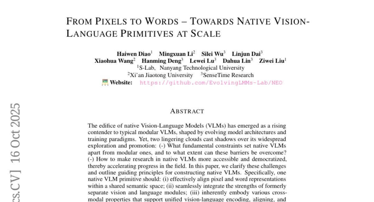 – The researchers clarify challenges in native VLMs, propose guiding principles, and introduce NEO, a new family of native VLMs that aligns pixel and word representations within a shared semantic space and integrates strengths of separate vision and language modules.