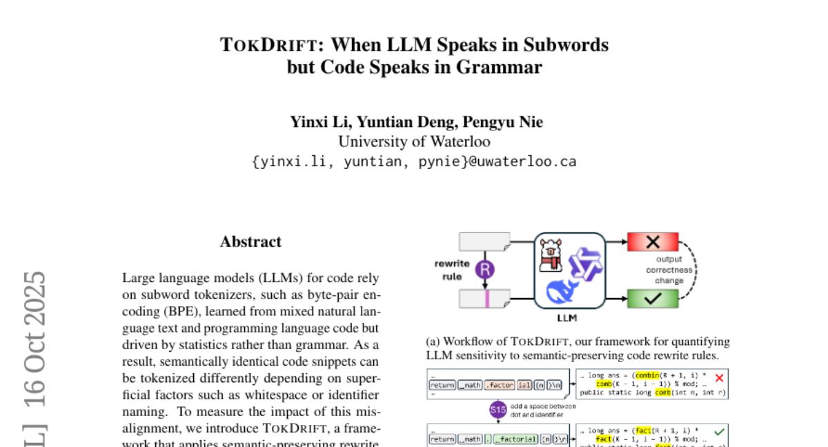 10. TokDrift: When LLM Speaks in Subwords but Code Speaks in Grammar
