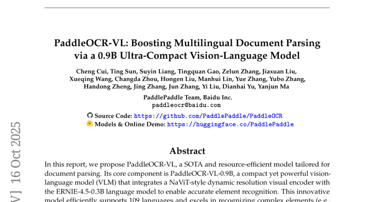 ๐ Keywords: PaddleOCR-VL, vision-language model, ERNIE-4.5, document parsing, AI-generated summary