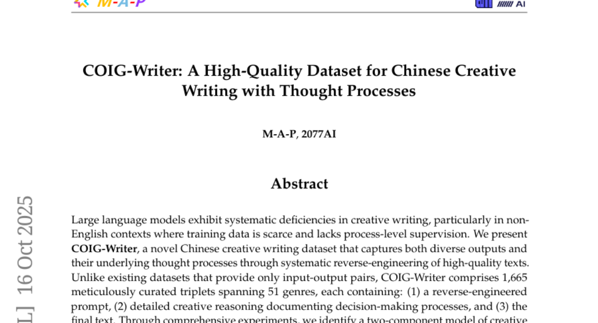 – Introduce COIG-Writer, a novel Chinese creative writing dataset designed to enhance performance in language models by focusing on both diverse outputs and underlying thought processes.