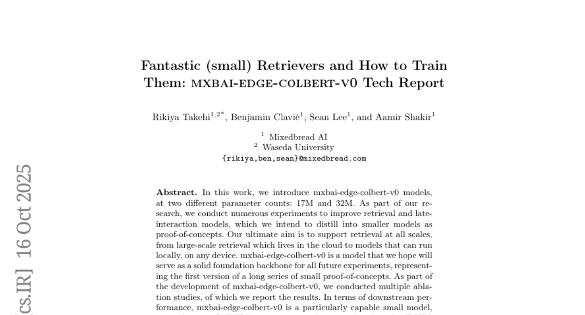 24. Fantastic (small) Retrievers and How to Train Them: mxbai-edge-colbert-v0 Tech Report