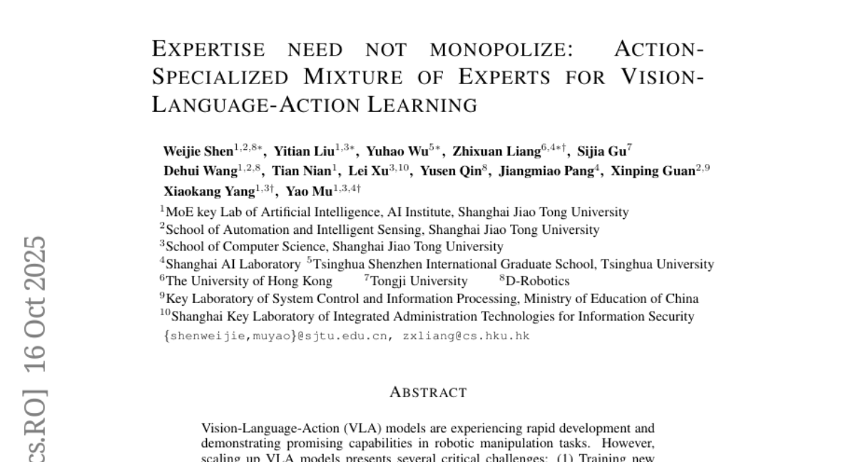 23. Expertise need not monopolize: Action-Specialized Mixture of Experts for Vision-Language-Action Learning