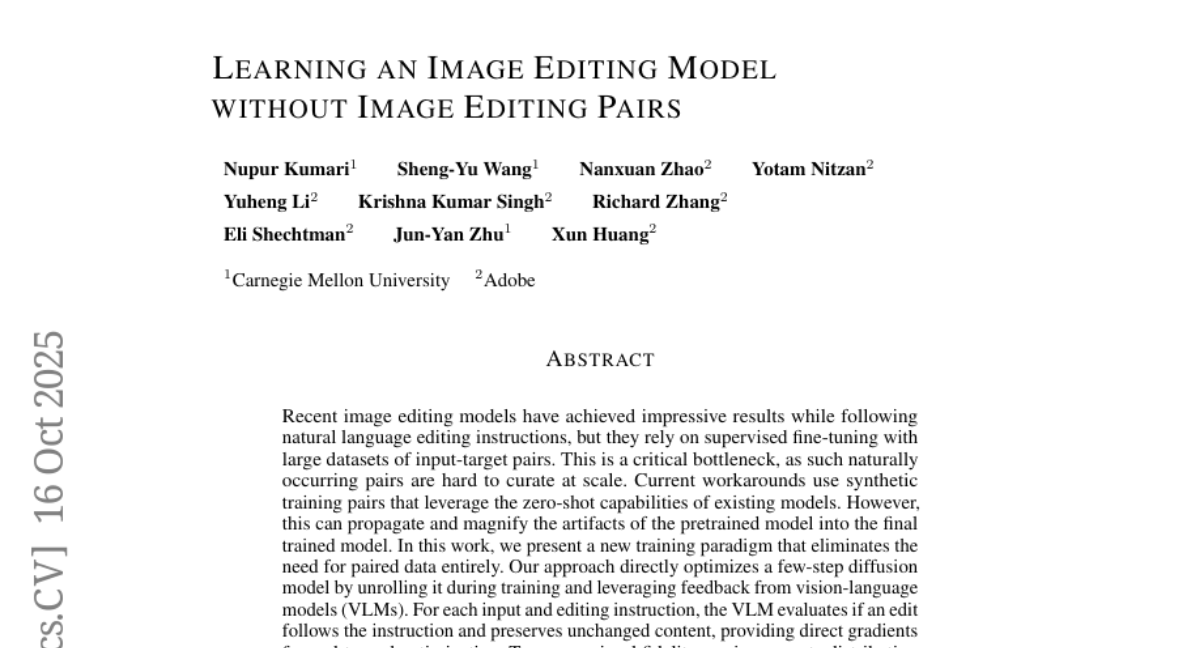 – Introduce a new training paradigm for image editing models that eliminates the necessity for paired data.