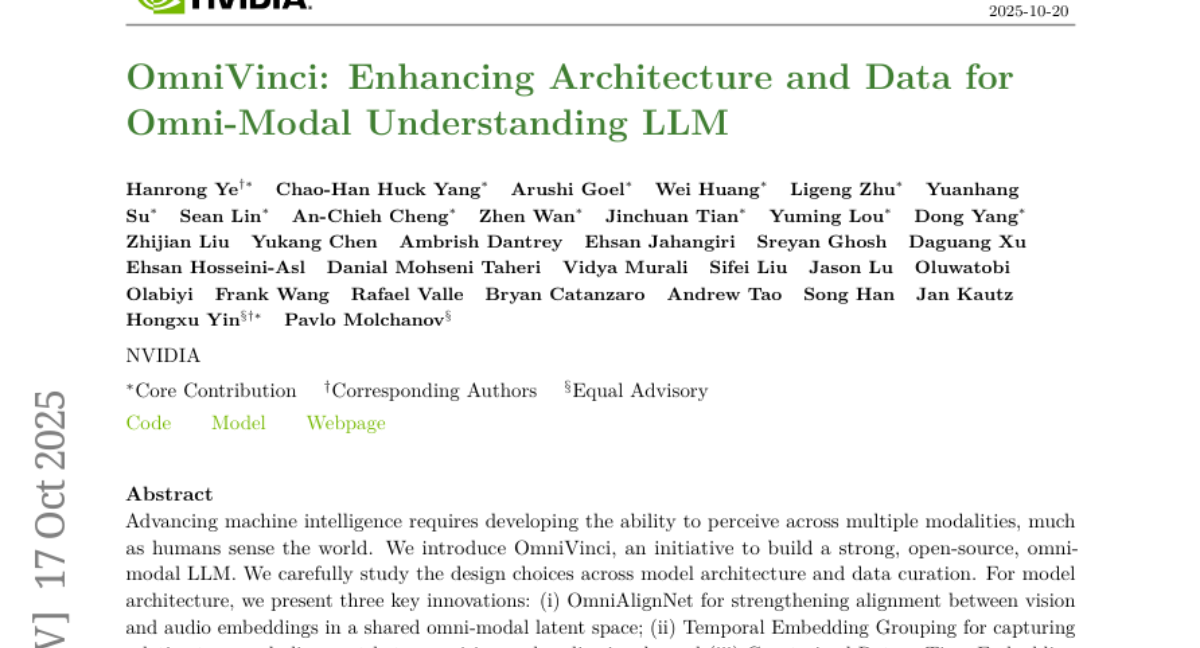 ๐ Keywords: OmniVinci, omni-modal, model architecture, data curation, AI Native