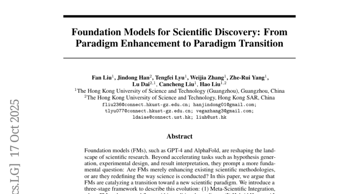 – FMs are not only enhancing but transforming scientific research into a new paradigm, highlighting their potential to operate with minimal human intervention. The paper also addresses risks and future implications of FM-enabled scientific discovery.