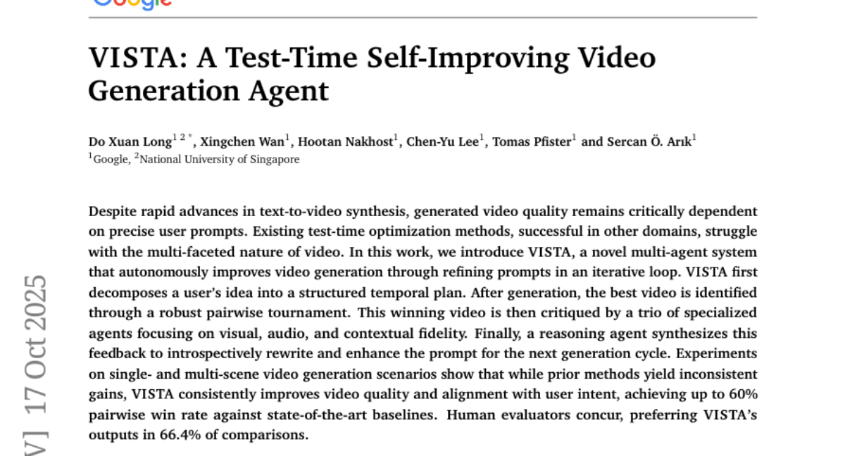 – The research aims to enhance video quality and alignment with user intent through the iterative refinement of user prompts using a multi-agent system called VISTA.