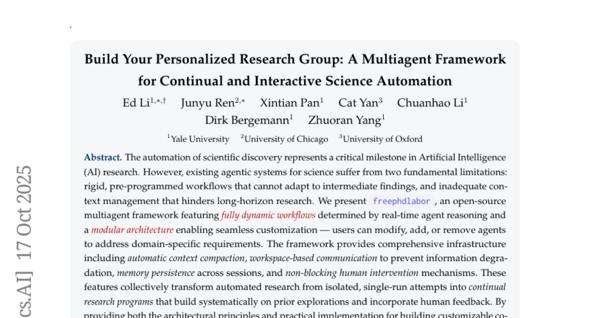 – To introduce Freephdlabor, an open-source multiagent framework designed to enable continual and interactive automated scientific research by overcoming current limitations in agentic systems for science.