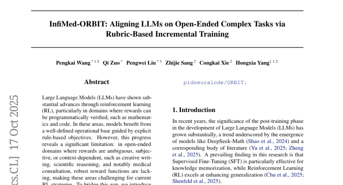 18. InfiMed-ORBIT: Aligning LLMs on Open-Ended Complex Tasks via Rubric-Based Incremental Training