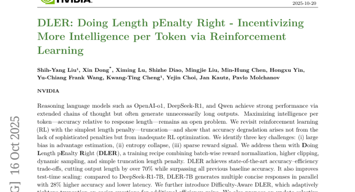 20. DLER: Doing Length pEnalty Right – Incentivizing More Intelligence per Token via Reinforcement Learning
