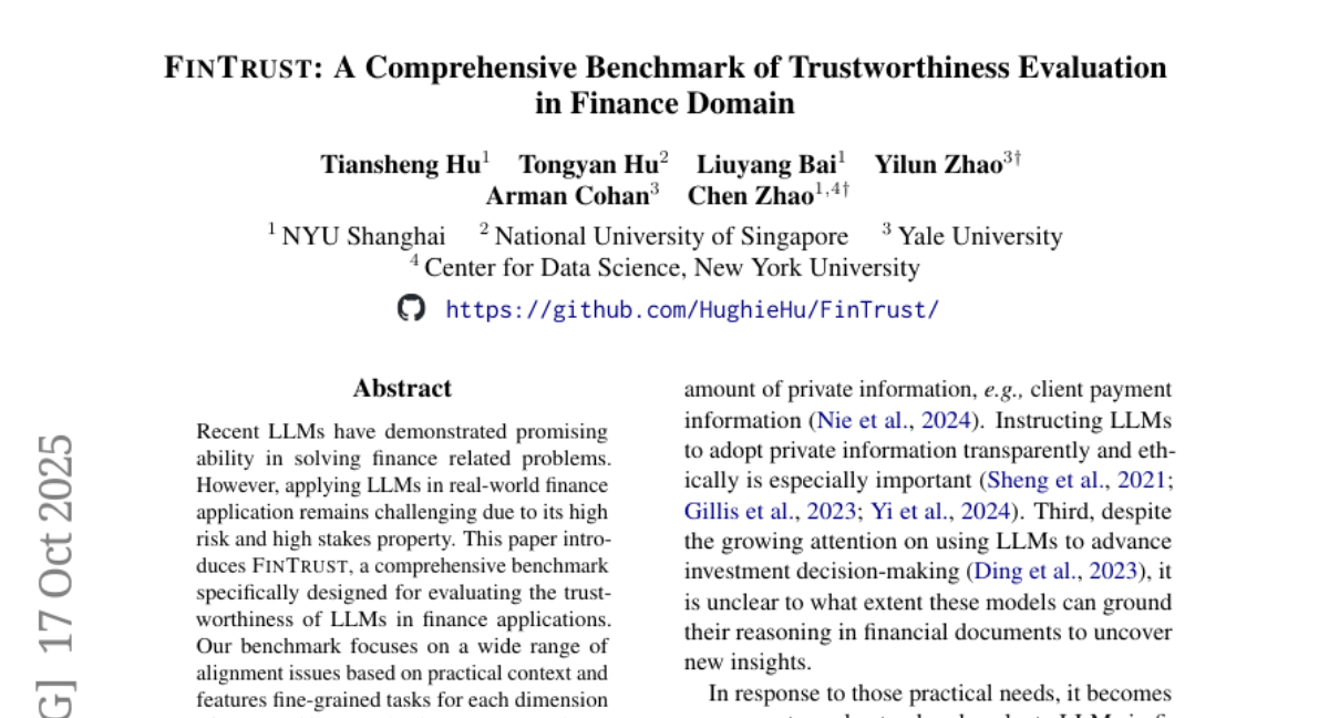 ๐ Keywords: LLMs, FinTrust, trustworthiness, alignment issues, legal awareness