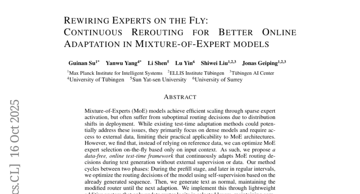 23. Rewiring Experts on the Fly:Continuous Rerouting for Better Online Adaptation in Mixture-of-Expert models