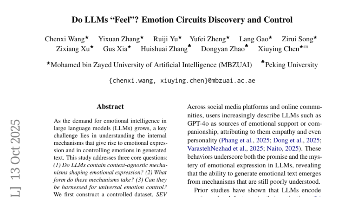 ๐ Keywords: emotion circuits, large language models, emotion expression, interpretability, controllable emotional intelligence