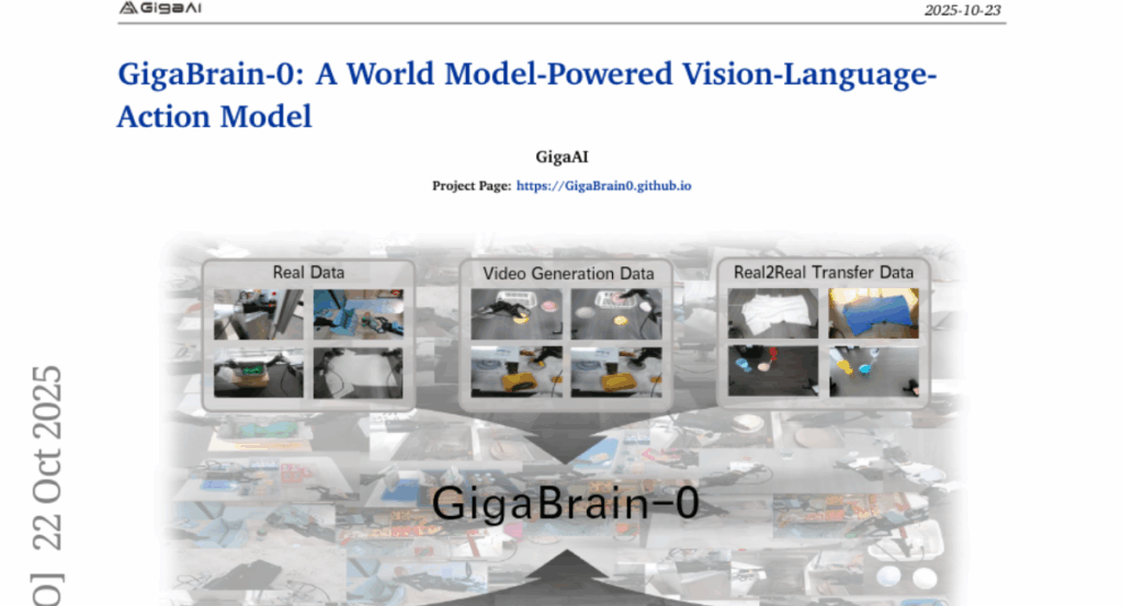 – Introduce GigaBrain-0, a VLA foundation model to improve real-world performance on complex manipulation tasks by leveraging world model-generated data.