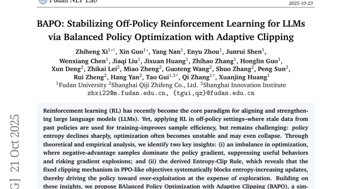 2. BAPO: Stabilizing Off-Policy Reinforcement Learning for LLMs via Balanced Policy Optimization with Adaptive Clipping
