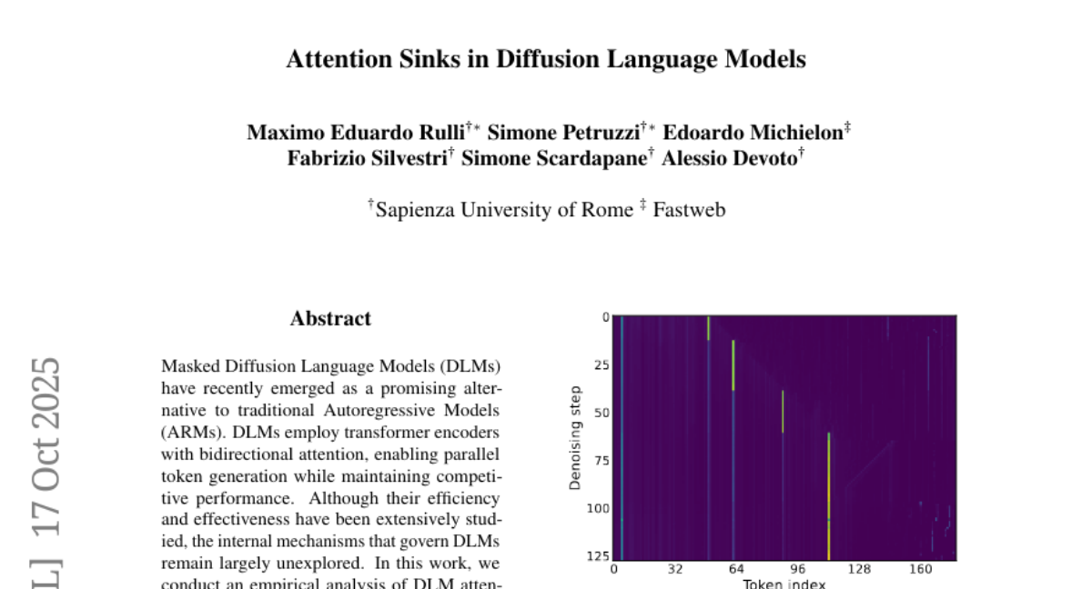 – Conducted an empirical analysis of attention patterns within Masked Diffusion Language Models, noting their dynamic sink positions and robustness against removal.