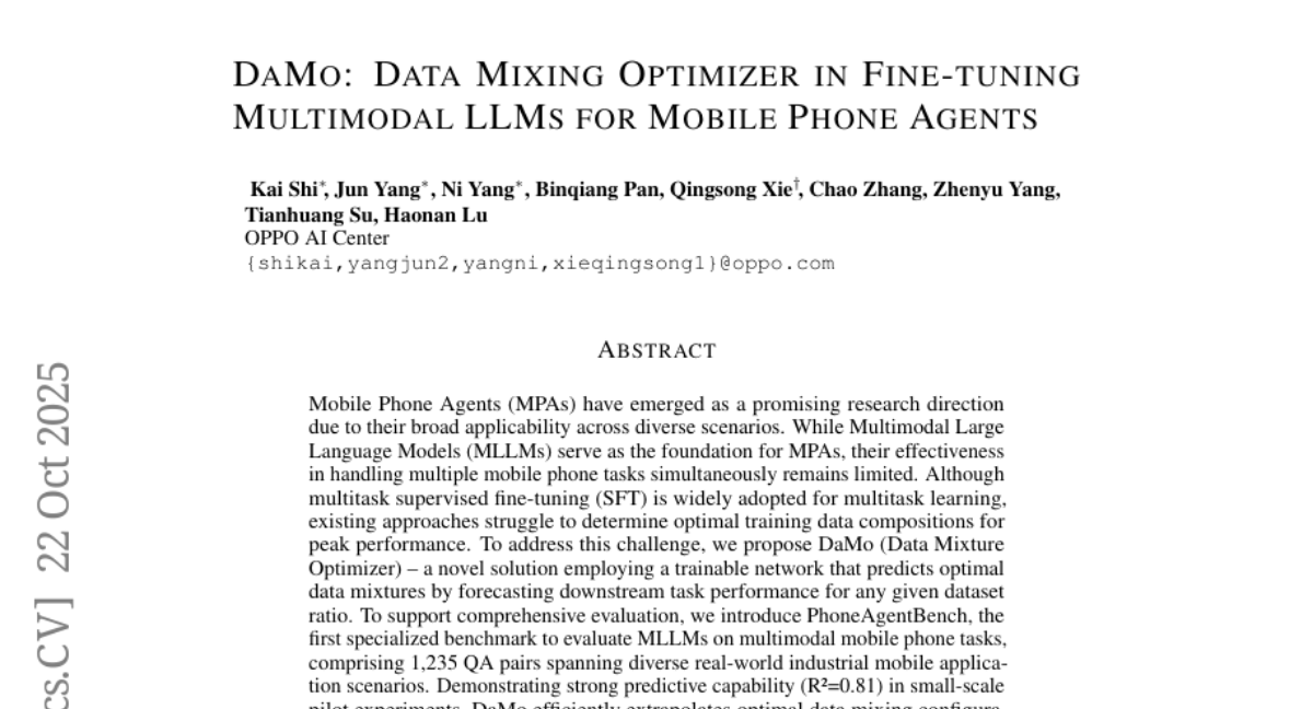 9. DaMo: Data Mixing Optimizer in Fine-tuning Multimodal LLMs for Mobile Phone Agents