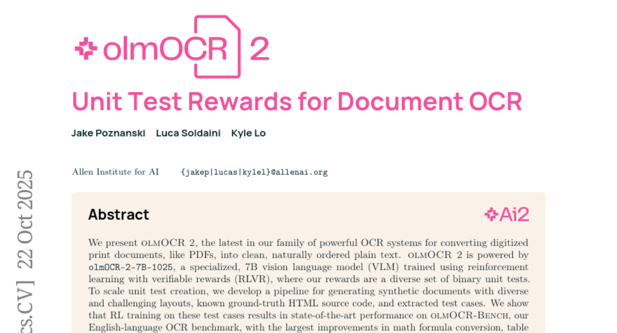 ๐ Keywords: olmOCR 2, Reinforcement Learning, State-of-the-art, OCR, Verifiable Rewards