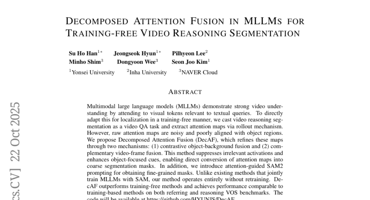 ๐ Keywords: Decomposed Attention Fusion, Multimodal large language models, Video Object Segmentation, Attention Maps, Video QA Task
