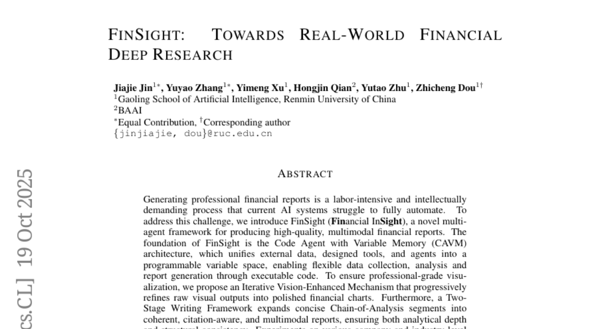 ๐ Keywords: FinSight, Multi-agent framework, CAVM architecture, Iterative Vision-Enhanced Mechanism, Chain-of-Analysis
