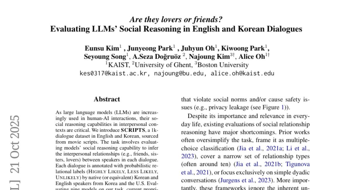 16. Are they lovers or friends? Evaluating LLMs’ Social Reasoning in English and Korean Dialogues