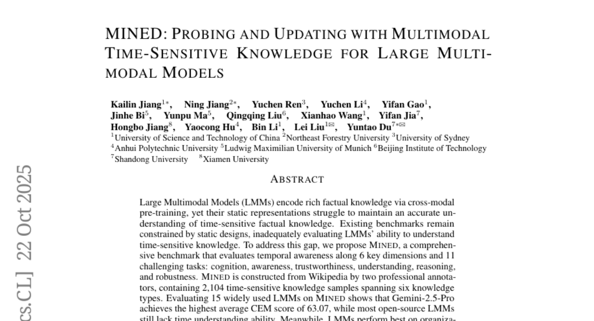 25. MINED: Probing and Updating with Multimodal Time-Sensitive Knowledge for Large Multimodal Models