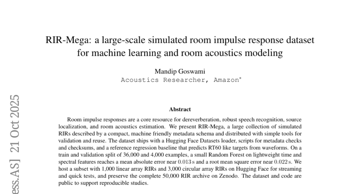 ๐ Keywords: RIR-Mega, Room impulse responses, RT60, Hugging Face Datasets, Random Forest