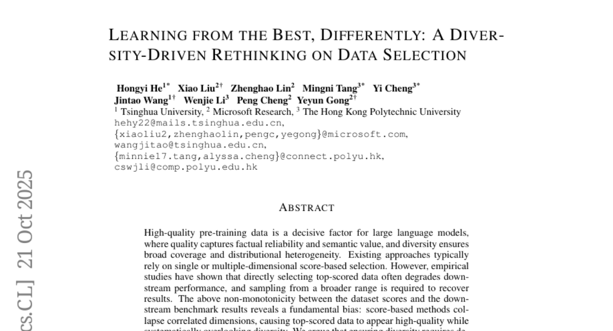 26. Learning from the Best, Differently: A Diversity-Driven Rethinking on Data Selection