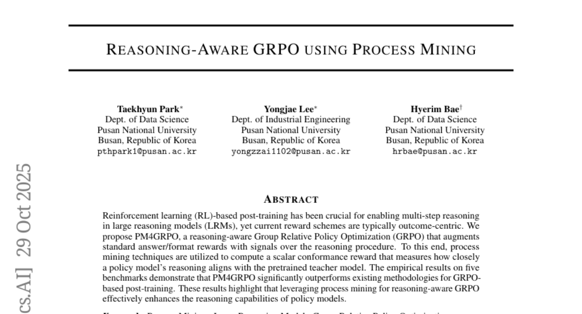 ๐ Keywords: Reinforcement learning, Large reasoning models, Process mining, PM4GRPO, Reasoning-aware