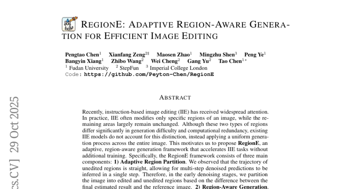 ๐ Keywords: instruction-based image editing, RegionE, adaptive region-aware generation, computational redundancy