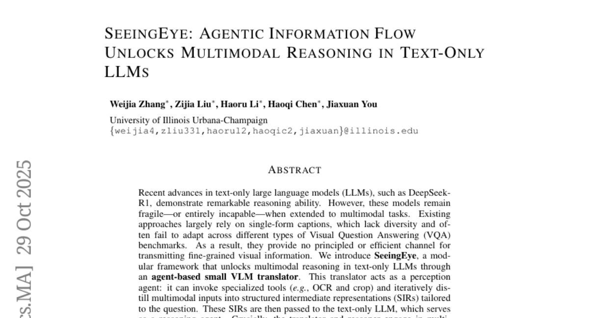 21. SeeingEye: Agentic Information Flow Unlocks Multimodal Reasoning In Text-only LLMs