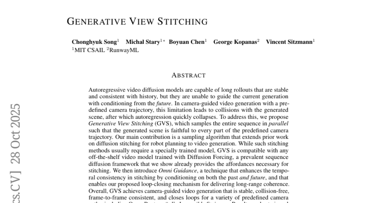 ๐ Keywords: Generative View Stitching, camera-guided video generation, diffusion stitching, Omni Guidance, loop-closing mechanism