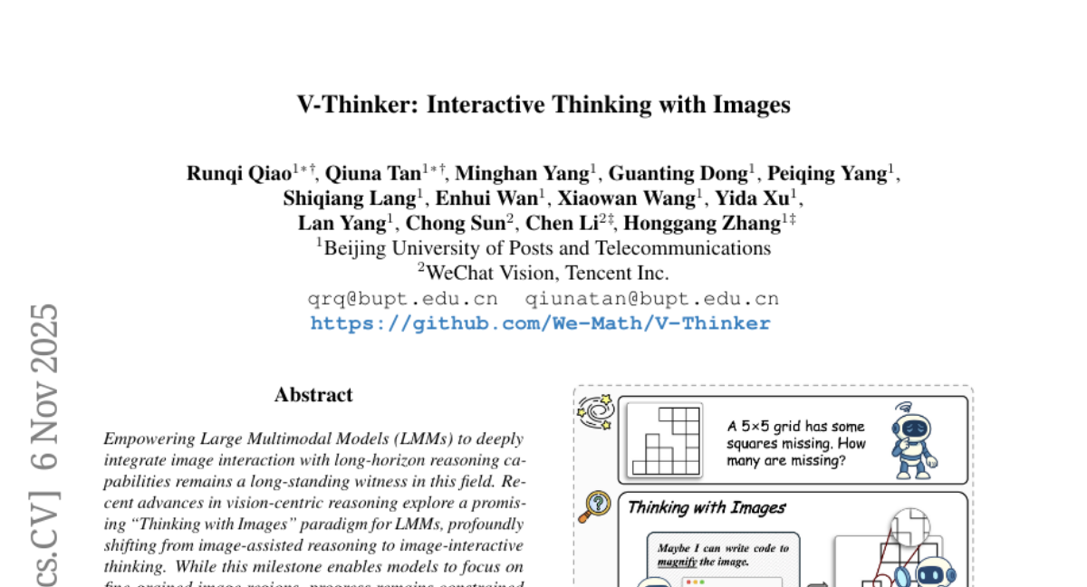 – The aim is to develop V-Thinker, a multimodal reasoning assistant that improves image-interactive thinking using reinforcement learning for enhanced performance in vision-centric tasks.