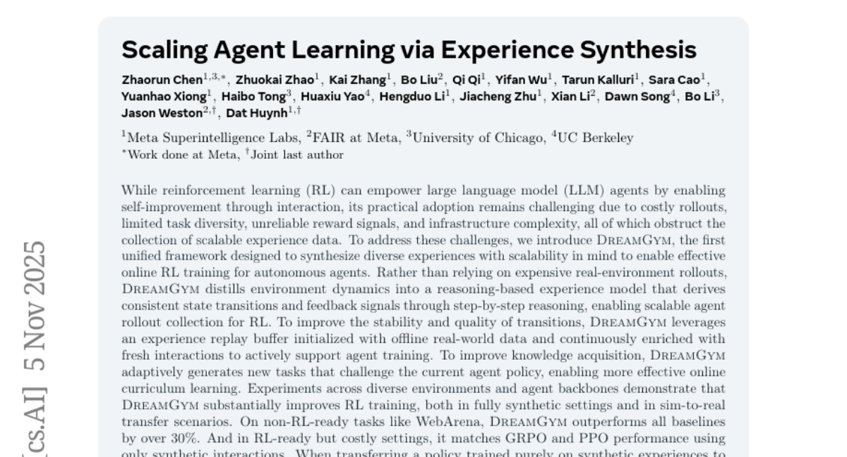 ๐ Keywords: DreamGym, Reinforcement Learning, AI Native, Experience Model, Curriculum Learning