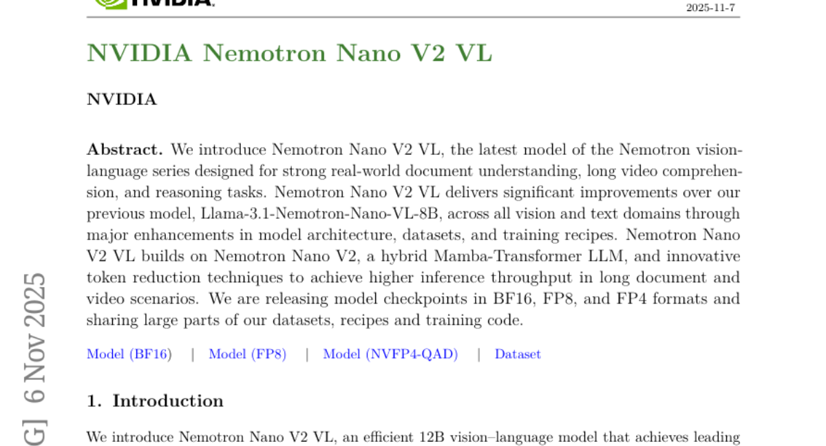 – Introduce Nemotron Nano V2 VL designed for enhanced document and video understanding, as well as reasoning tasks.